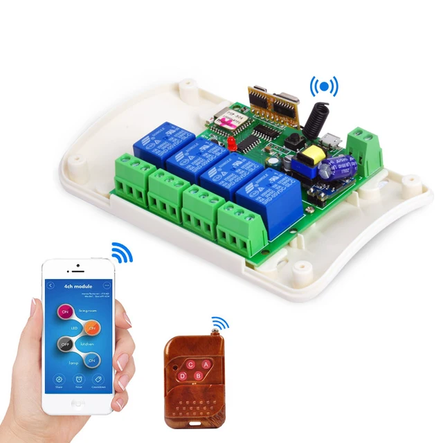 AC85-250V/7-32V Home Automation Modules Jog Inching WIFI Wireless Smart Switch Relay rf receive 433mhz Remote Control 4ch