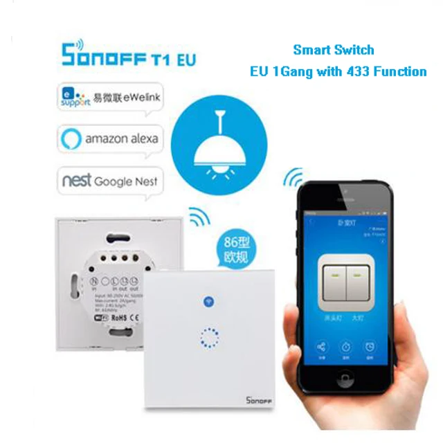 Itead Sonoff T1 EU 1gang Smart Home Automation Module Wifi Switch With 433 Function,Touch LED Light Wall Timer Smart Switch