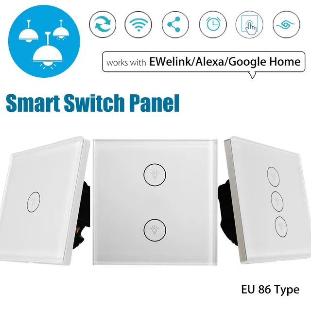 Kinco WIFI Smart Wall EU 1/2/3 Gang Switch Touch Panel Smart Home Timing APP Remote Control For Home Automation module