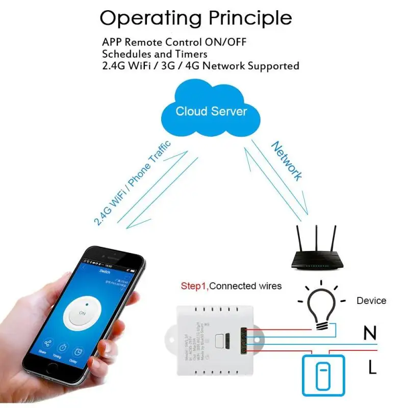 WiFi Technology and Smart App Control: Adopts 2.4G WiFi Technology and App remote control, once set up the connection, smartphone / tablet can remotely turn on/off your household appliances at anytime and anywhere via the "eWeLink" App with 2.4G WiFi /4G/3G network(Easily download the "eWeLink" App in the App store of Google Android or iOS).