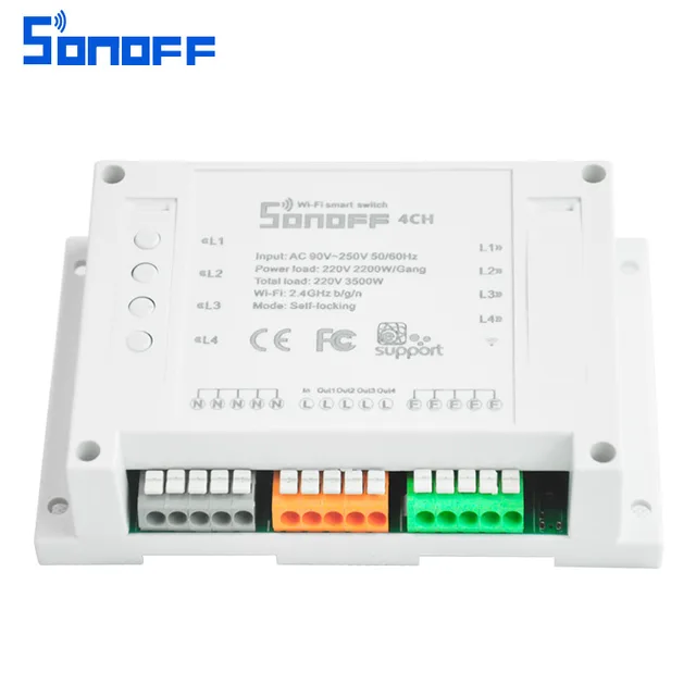 Sonoff 4CH supports to connect and control 4 home appliances, which can be turned on/off separately by the buttons or iOS and Android APP EweLink. Owning a Sonoff 4CH means you have 4 Sonoff basic WiFi switches integrate together.