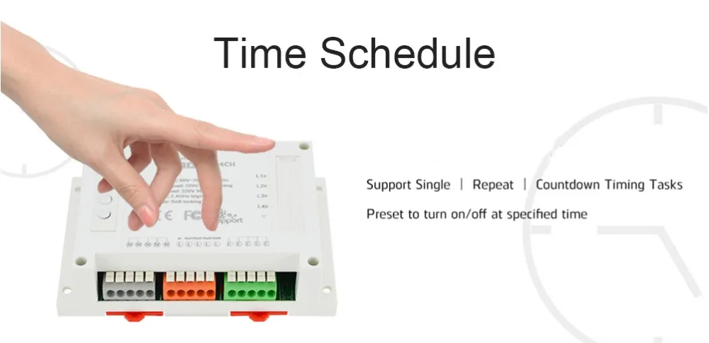 2.Sonoff 4CH 4 gang light switch supports to connect and control 4 electrical appliances, which can be turned on/off separately by the buttons or iOS/Android App EweLink.