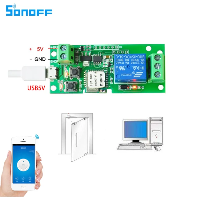 sonoff DC5V 12v 24v 32v wifi switch wireless Relay module Smart home Automation for access control systemr Inching/Self-Locking