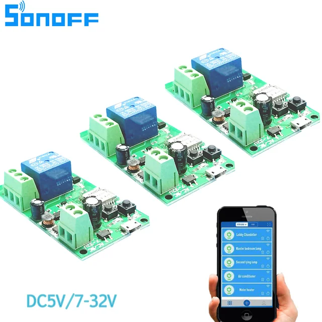 Sonoff DC5V/12Vwifi switch wireless Relay module Smart home Automation for Computer access 24v 32v Inching/Self-Locking IOS