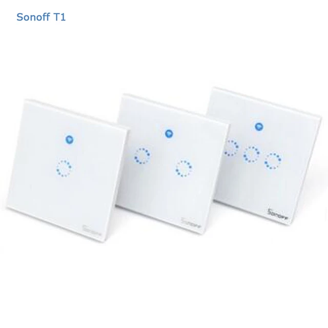 The Sonoff T1 Wall Touch Switch series are 1-3 gang 86 type touch/App/ RF control luxury smart light switch. The wireless wall switch can be added to iOS/Android App eWeLink via WiFi, allowing users to remotely turn on/off connected lights or appliances separately from anywhere at any time. After successfully learning codes with 433MHz RF Remote, the touch light switch can be turneD on/off indoors. Upgrade your home to an elegant smart home, control anywhere, anytime!