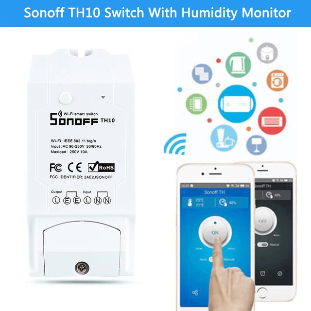 Sonoff TH10 is a wireless temperature and humidity monitoring switch which can remote monitor and set temperature and humidity range to turn on/off connected appliances through the iOS/Android APP eWeLink.
