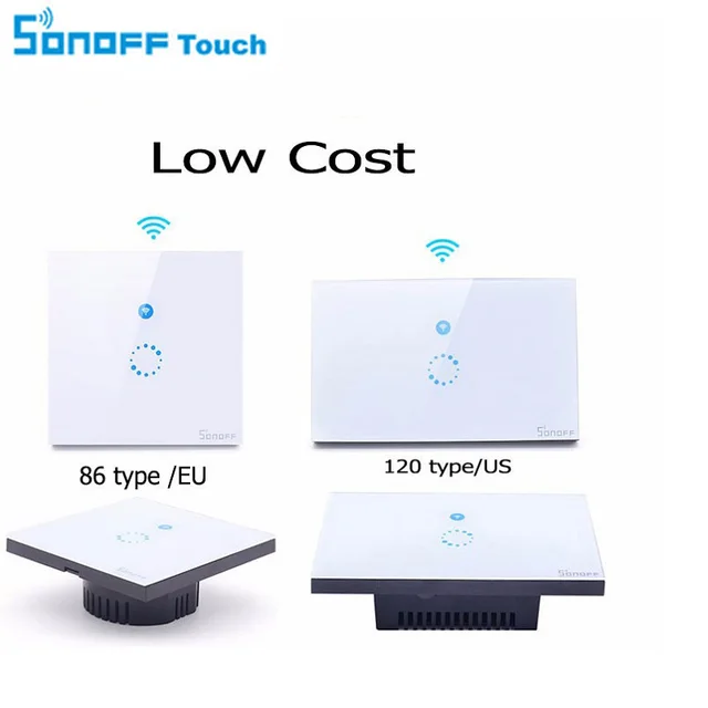 The Sonoff Touch is a one way(1 gang) WiFi wall touch switch. It can be paired with iOS/Android APP eWeLink via WiFi, lets you to remotely turn on/off the led and light from anywhere at any time. Its LED backlight lets you easily find and turn on the switch at night. Support all kinds of lights, perfect for smart home solution!